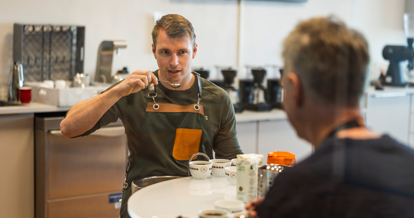 Joachim Pietronigro er en av de profesjonelle cupperne hos JOH. JOHANNSON KAFFE AS. Foto: Sjo og Floyd